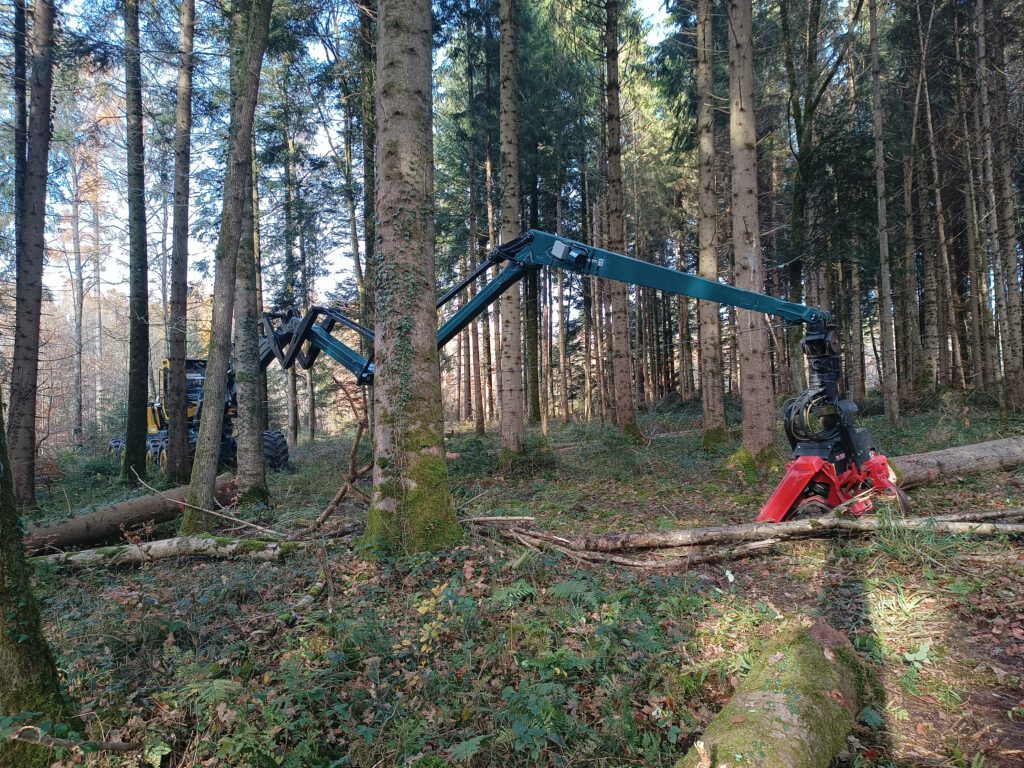 Das Projekt Outreach hat in Baden-Württemberg das neue Fäller-Vorrücke-Fahrzeug mit 20 m Reichweite erfolgreich im Wald getestet.